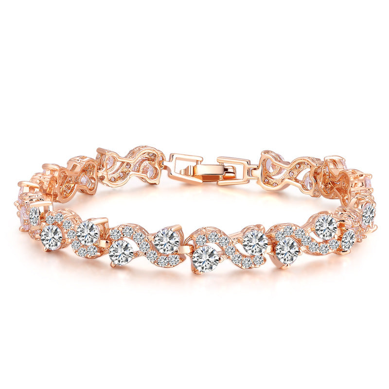Rose tonunun yumuşak ışıltısı ile parlak taşların etkileyici dizilimi birleşerek bilekte zarif bir akış oluşturur. Kıvrımlı formu, ışığı her açıdan yakalayan hareketli bir parıltı sunarken tasarımın detayları modern bir şıklık hissi bırakır. Günlük kombinlerde sıcak bir dokunuş, özel anlarda ise göz alıcı bir imza niteliği taşıyan bu parça, Azuri’nin incelikli ve zamansız stilini yansıtır.