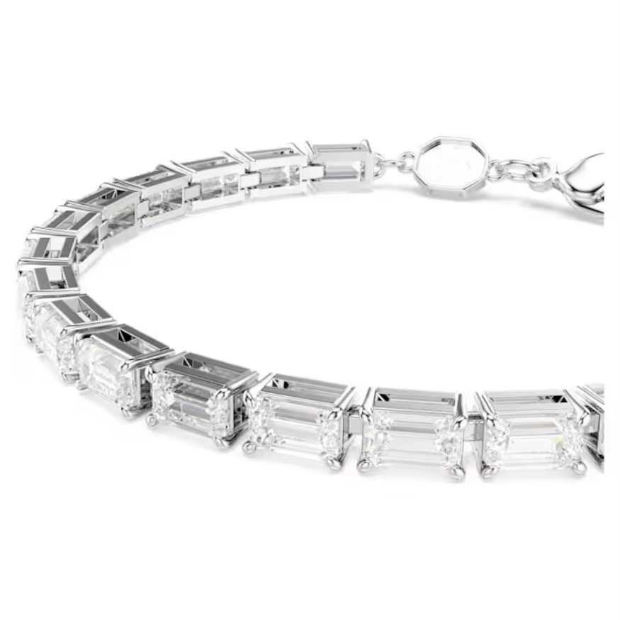 Zarafetle kesilmiş bir ışıltı yolculuğu... Bu zarif bileklik, sekizgen basamak kesimli taşların kusursuz sıralanışıyla klasik şıklığı modern bir yorumla yeniden tanımlıyor. Işığı her yönden yansıtan berrak taş detayları, bileğinizde adeta bir yıldız koridoru gibi parıldarken; rodyum kaplama yüzey ise sofistike bir bütünlük sunuyor. Ayarlanabilir yapısı ve ıstakoz klipsiyle konforlu kullanım sağlarken, sade formu sayesinde hem gündüz zarafetine hem de gece ışıltısına eşlik ediyor. Crystalia'nın yalın ama etkileyici ruhunu taşıyan bu bileklik, her anı özel kılar.