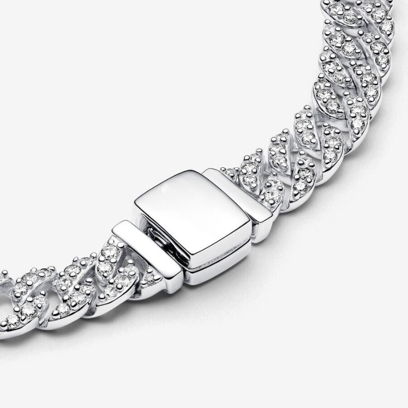 Şıklığı ve zarafeti bir arada sunan Crystalia Parıltılı Küba Zincirli Bileklik, ışıltılı pavé taşlarla bezenmiş zincir yapısıyla dikkat çeker. Her bir bağlantıda yer alan üç yuvarlak taş, ışığın her açıdan zarafetle yansımasını sağlar. Dayanıklı paslanmaz çelik üzerine ışıltılı taşların özenle yerleştirildiği bu bileklik, günlük stilinize veya özel anlarınıza mükemmel bir tamamlayıcı olacak.