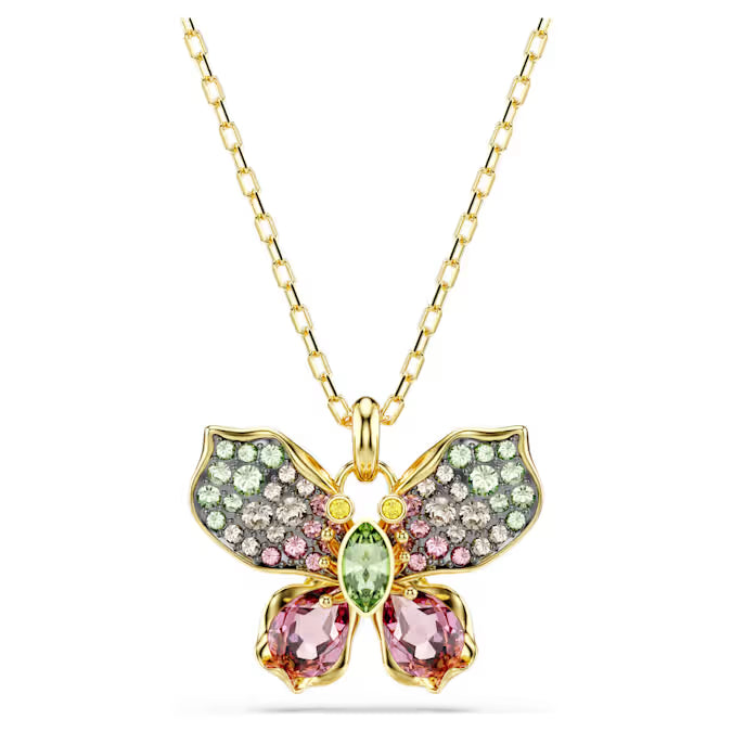 Stilinizi özgürce ifade edin… Zarif kelebek motifine sahip bu özel tasarım, farklı şekil ve renklerdeki kristallerle süslenerek ışığın büyüsünü yansıtıyor. Altın rengi kaplama zincir üzerinde hayat bulan bu göz alıcı parça, doğanın zarafetinden ilham alıyor. Neşe, umut ve lüks bir dokunuşu bir araya getiren bu kolye, hem ruhunuza anlam katacak hem de tarzınızı eşsiz kılacak.
