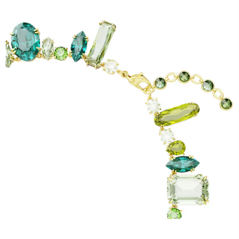 Crystalia Gema Koleksiyonu’ndan bu göz alıcı kolye, farklı kesim ve renklerin uyumlu birleşimiyle ışık saçıyor. Yeşilin en etkileyici tonlarındaki taşlar, parlak altın rengi kaplama üzerinde bohem bir tarzla sıralandı. Istakoz klipsli mekanizması, kolay kullanım ve güvenli tutuş sağlıyor. Anında ihtişam katacak bu zarif parça, günlük ve özel anlarınızda tarzınızı tamamlamak için ideal.
